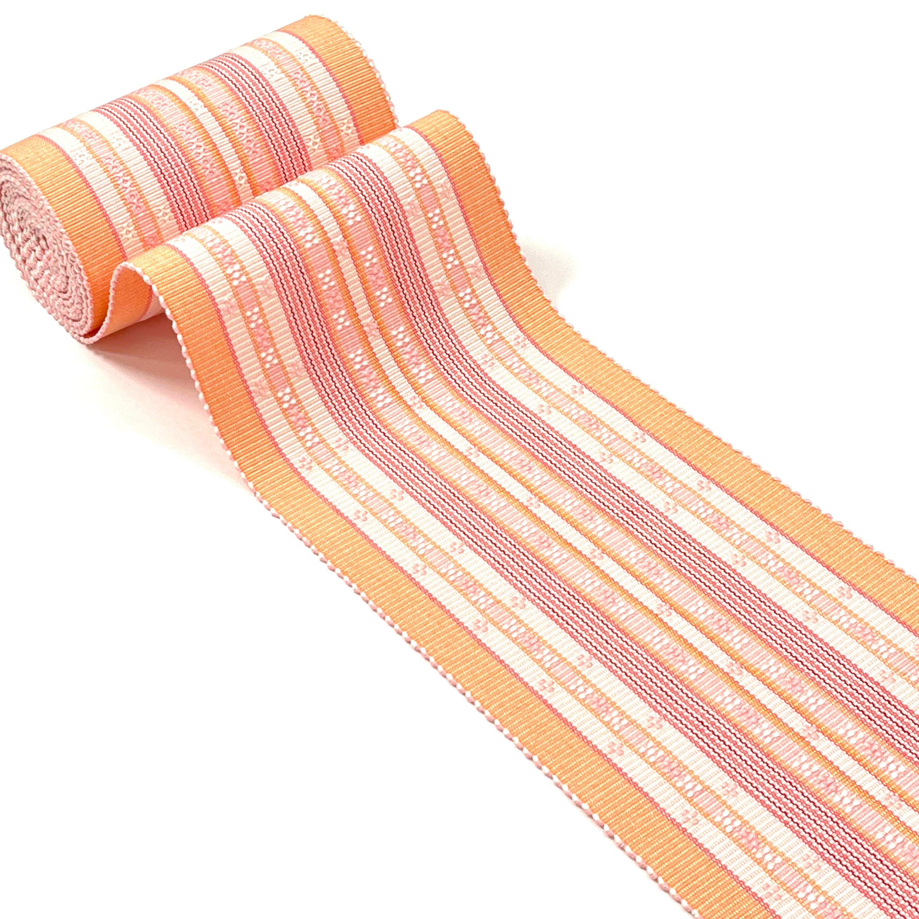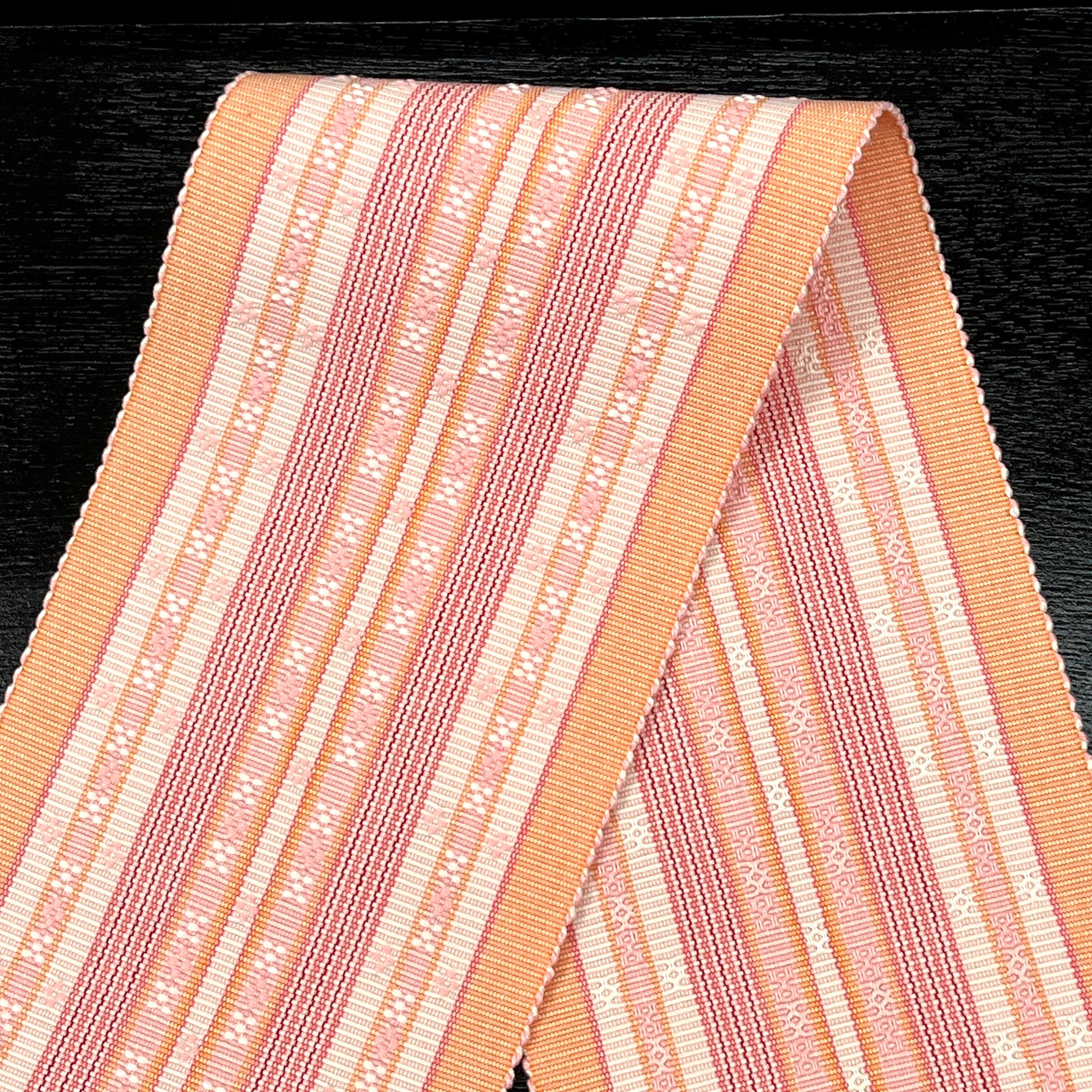 首里花織 半幅帯 ピーチカラー 薄オレンジ色 薄桃色 (端処理込み) 4RK31084