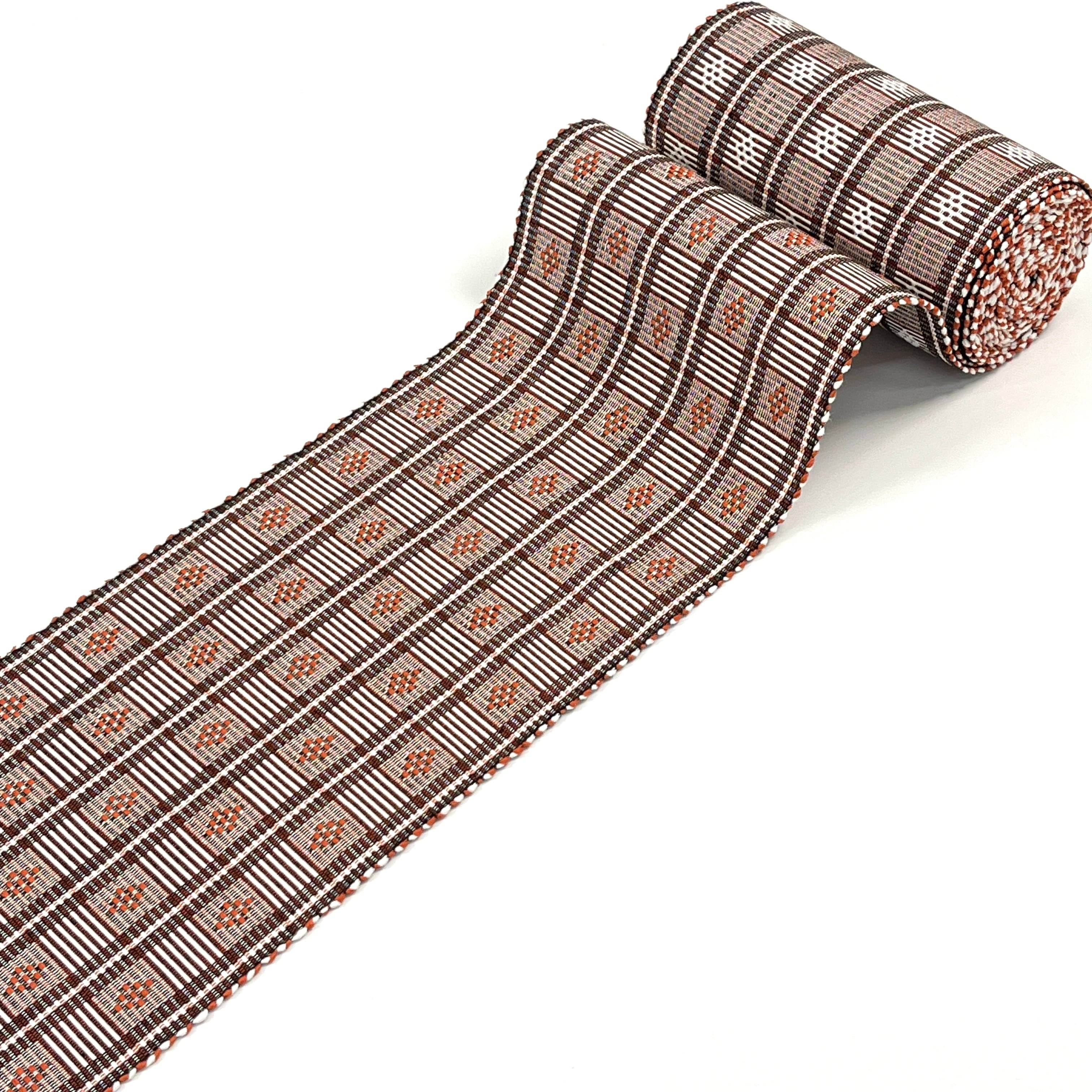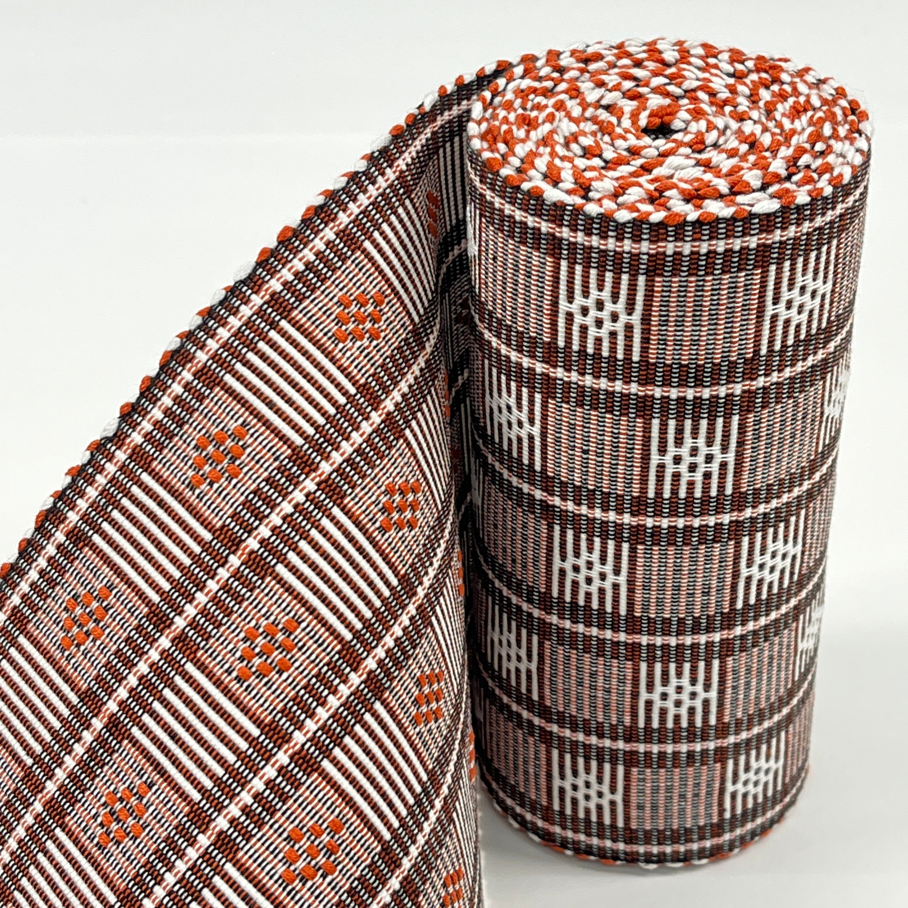 レンガ色(茶色)、黒、白で織られた可愛さの中に大人っぽさも併せ持つ『首里やしらみ花織の半幅帯』です。