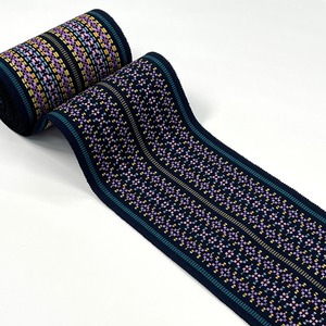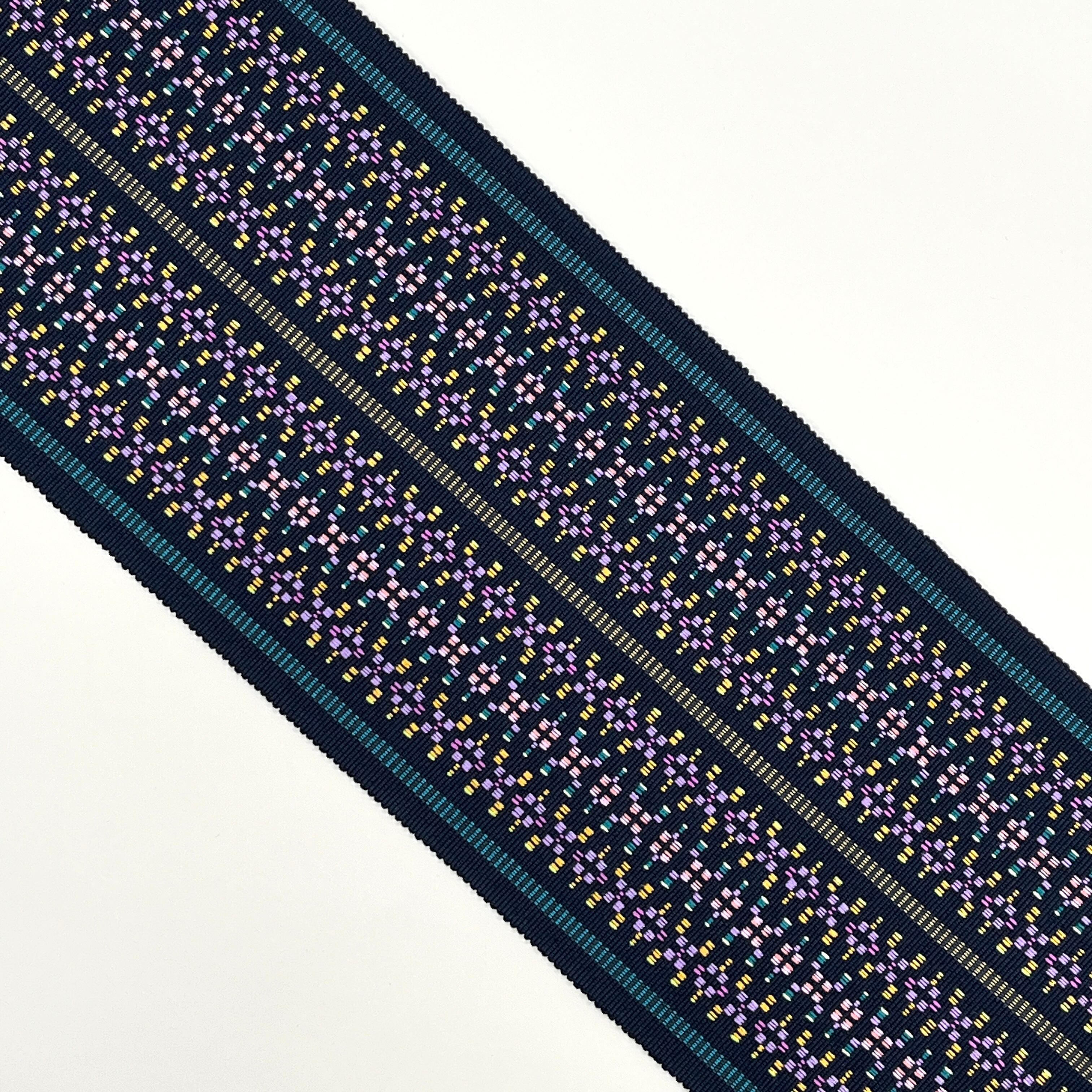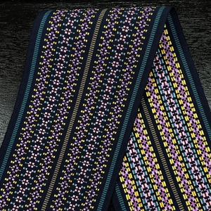 知花花織 半幅帯 黒 青緑 紫 カラフル (端処理込み) 4RK33011